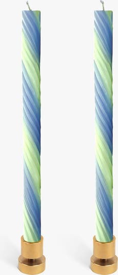 Rope Candles are about texture and depth, created by weaving bright color combinations into multi-colored spirals. Designed by Dutch designer Lex Pott, they fit standard candleholders and bring bold visual impact to any setting. Each pack includes two unscented candles.