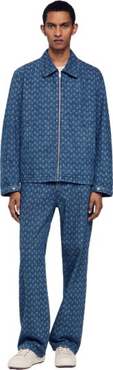 Denim jacket with laser-etched rope pattern, zip fastening and piped pockets.
