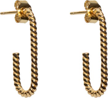 These rope inspired hoops put a twist in your ensemble that shines with sterling silver and 18-karat-gold plating.