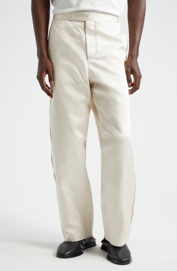 Satin rope replaces the expected satin stripes down the outseams of these silk-twill tuxedo pants inspired by a formal jacket from the late 20th century.