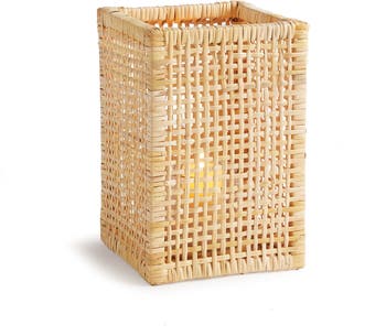 The tightly woven design and natural tones of the rattan make this hurricane stand out. Complete with a closed bottom glass insert, it may also be used as a vase. How sweet!