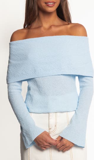 Petal & Pup Rory Off the Shoulder Knit Top, Main, color, Pale Blue