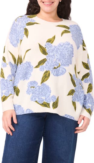 Tumbling hydrangea blooms sweeten a staple sweater knit in a classic crewneck silhouette.
