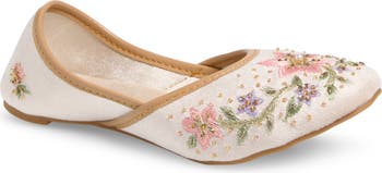 Handmade by artisans in Pakistan, this stunning flat features intricate beading and embroidery along with a generously cushioned footbed.