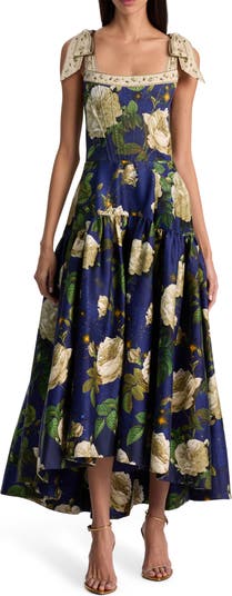 Rosalee Tie Strap Corset Stretch Cotton High-Low Dress