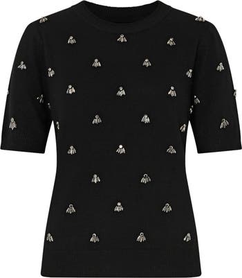 Add a sprinkle of sparkle to sweater season with a short-sleeved option enriched with wool and cashmere.