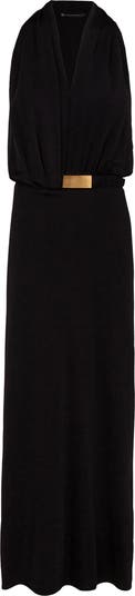 A tonal belt with gleaming hardware hugs the frame of this maxi-length cover-up dress that's perfect for pool days and vacay-ready moments alike.