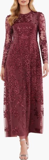 The Rosanna Lattice Round Neck Gown. Romantic and striking, this gown reimagines archival florals for a modern muse. The bodice is embroidered with dense sequin florals that transition into an ornate lattice before softening into scattered sequins toward the hem. Crafted in layers of lightweight tulle, the gown flows with movement.