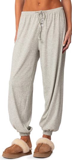 Love to lounge in these baggy tie-waist sweatpants punctuated with cool cuffed hems.