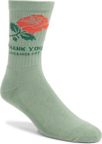 A vibrant rose blooms atop crew socks knit in part with soft, breathable cotton and designed with snug ribbing on the legs for a stay-put fit.