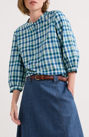 Crisp yarn-dyed checks enliven a popover shirt made from pure organic cotton and finished with a curved hem that looks great untucked.