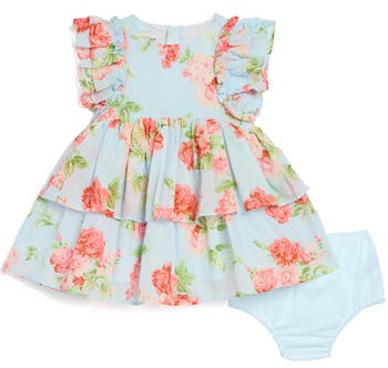 Outfit your babe in this darling set that includes a frilled cotton dress and matching bloomers.