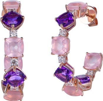 7.58ct Rose Quartz & Amethyst Cushion Cut Earrings in 14K Rose gold with natural diamonds