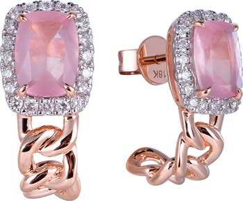 1.4ct Rose Quartz Cushion Cut Earrings in 14K Rose gold with natural diamonds