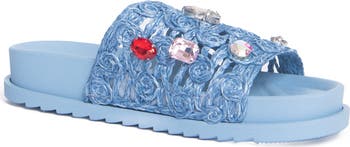 a sparkling flat designed with eye-catching rose appliqués and oversized rhinestone embellishments
