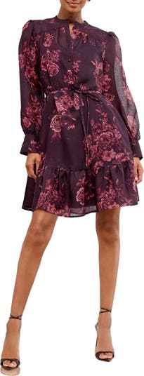 This long-sleeve floral minidress is made for twirling, with its ruffled hem, cinched waist and dreamy print that transitions seamlessly from day to night.