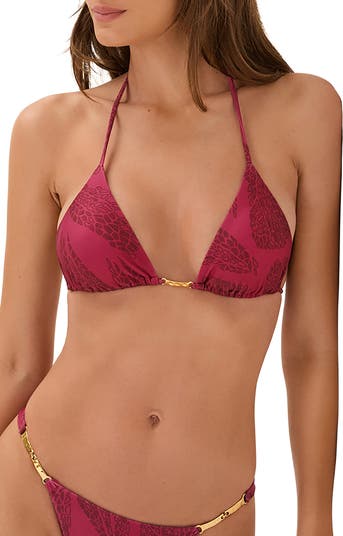 Polished bit hardware shines at the center of a signature triangle bikini top made with lots of stretch for comfort whether soaking up the sun or cooling off in the water.