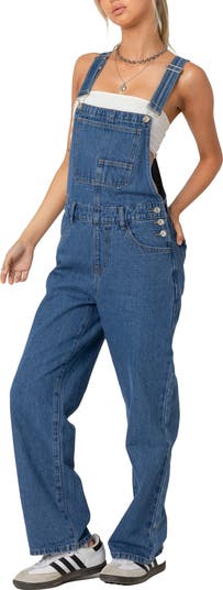 Plentiful pockets and a baggy fit up the utilitarian appeal of these classic overalls cut from nonstretch denim with a medium-wash finish.