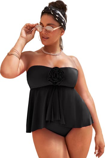 Rosette Bandeau Tankini Top
