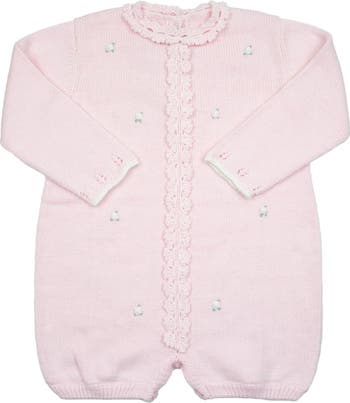 Our Rosette Knit Bubble Romper is a classic romper with a perfectly sweet fit. This romper is knit with an ultra-soft blend of Pima Cotton and Modal. The hand embroidered rosettes and crochet trim add an elegant touch. Heirloom quality made with the utmost care. This Rosette Knit Bubble Romper is comfortable enough to move in and designed to be a perfectly elevated basic. Made of 70% Pima Cotton and 30% Modal. The perfect gift to give your favorite little girl and to also receive!