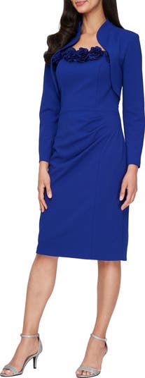 Rosette Stretch Crepe Cocktail Dress with Bolero Jacket