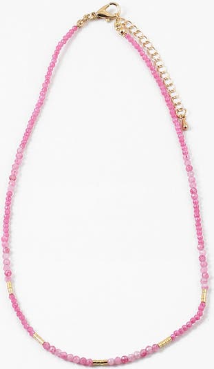 A strand of tiny pink beads—ranging from soft blush to rosy brights—creates the sweetest, most delicate pop of color. Finished with petite gold accents, this necklace is lightweight, feminine, and perfect for everyday layering.
