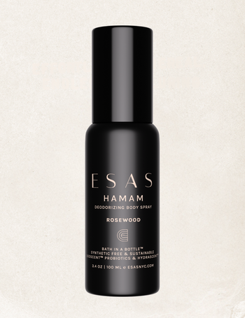 - HOW IT WORKS : Inspired by the ancient Hamam ritual, Esas Hamam Deodorizing Body Spray is your "bath in a bottle," designed to purify, cleanse, and refresh. Rooted in a tradition that dates back to the 14th century, this unique body spray brings the essence of Roman baths into the modern day. Scientifically formulated with the purest ingredients, including Certified Organic Botanical Alcohol*, Witch Hazel, Coconut-Derived Glycerin*, and Esas DeoScent™ Sugarcane Ferment*, it effectively cleanses, deodorizes, and refreshes your skin wherever you go. Enriched with hydrating hyaluronic acid, vitamin E, and antioxidant-rich grape leaf tincture, this spray not only purifies but also nourishes, leaving your skin feeling revitalized and lightly scented. Perfect for an on-the-go refresh, it's the ultimate solution for staying clean, refreshed, and fragrant throughout your day.