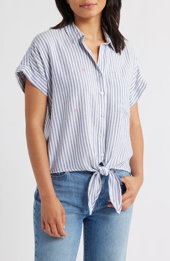 Rosie Embroidered Tie Front Short Sleeve Button-Up Shirt