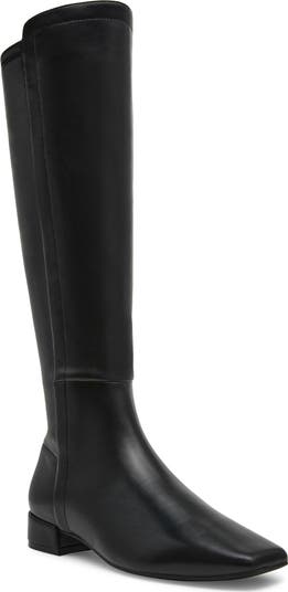A squared-off toe furthers the streamlined profile of a knee-high faux-leather boot featuring a stretchy back shaft and side zipper for easy wear. A lightly cushioned footbed and flexible sole offer comfort and stability.