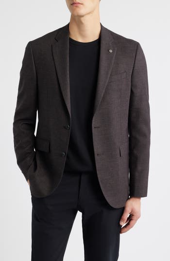 Keep your look effortlessly refined in this slim-fitting houndstooth sport coat complete with a logo lapel pin.