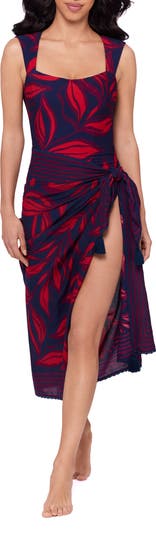 If you have to leave your beach towel or pool chaise, wrap yourself in a tassel-tied cotton pareo covered in a vibrant print.