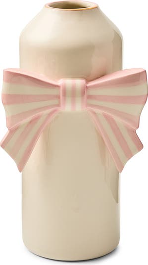 Keep your favorite flowers in this charming vase made from smooth ceramic and featuring a dimensional striped bow trimmed with touches of golden detail.