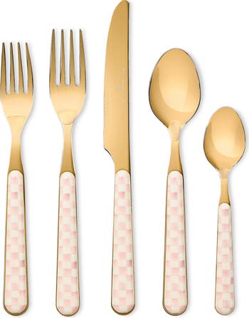 Color-dragged checks are anything but basic on this stainless-steel flatware set that adds a dose of panache and personality to your warm, welcoming table.