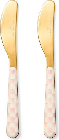 Durable stainless steel spreaders are given signature personality with check-adorned handles.