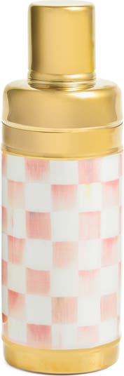 Your favorite cocktail is so much more appetizing when served up in the hand-painted color-dragged checks of this enameled-steel shaker that gives your bar cart a distinctive sense of style.