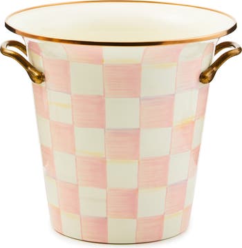 Your favorite vintage is so much more appetizing when served up in the hand-painted color-dragged checks of this enameled-steel wine cooler.