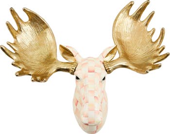 Gilt antlers highlight the brand's signature checks that decorate this statement-making moose that brings an ample amount of whimsy to your decor.