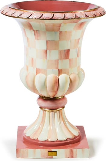 Hand-painted color-dragged checks elevate this urn made from durable, weather-resistant materials for a cheery accent displayed indoors or outside.