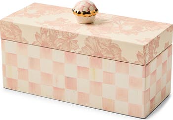 You'll find stylish storage in this faux-leather box featuring a floral lid and signature hand-painted checks.