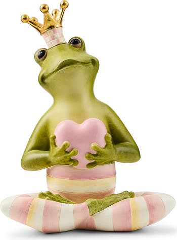 Whimsical yet sophisticated, this frog figurine stands out with its striking, hand-painted stripes and sweet puffy heart.