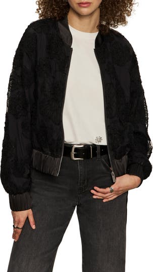 Tonal blooms texture a nylon bomber that's ready to party.