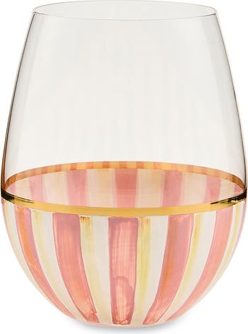 Rosy Stripe Stemless Wine Glass