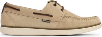 Traditional detailing makes an easy favorite of a classic moc-toe boat shoe that's topped with premium suede and hand-stitched to provide durability and comfort. Rawhide laces wrap the heel and tie at the bridge for a custom fit, while a grippy rubber sole provides confident footing on wet and dry surfaces.