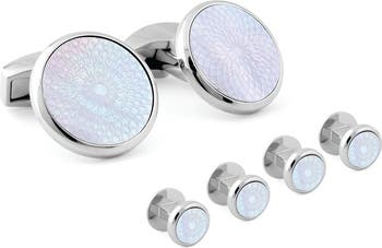 Rotondo Guilloché Mother-of-Pearl Formal Cuff Link & Shirt Stud Set