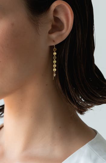 Rouje Threaders in 14k gold-filled with sleek, linked discs. Lightweight and minimal, offering understated elegance for those who seek refined exclusivity.