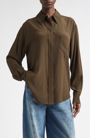 Rouleaux detailing adds visual intrigue to an otherwise minimalist shirt cut in a relaxed fit from fluid silk crêpe de Chine.