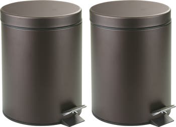 - COMPACT SILHOUETTE - The iDesign Step Trash Can displays a clean, minimal design that pairs harmoniously with any decor; The quiet, pedal-operated lid makes for easy trash disposal and prevents odors from escaping; For convenience, the low-profile silhouette nestles neatly into tight corners or fits under desks for discreet storage; The interior liner bucket has a metal handle and can be removed for easy emptying; Set of 2