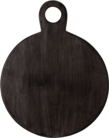 Storied Home Round Acacia Wood Cheese and Cutting Board with Circle Handle, Black, Main, color, Black