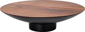 • A stunning and sturdy pedestal with a natural acacia wood top and a black metal base