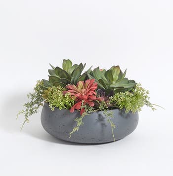 Enhance your home décor with our stylish and versatile lifelike faux round succulent arrangement. This meticulously crafted arrangement brings the natural beauty of succulents into any space, effortlessly complementing a wide range of interior design styles.